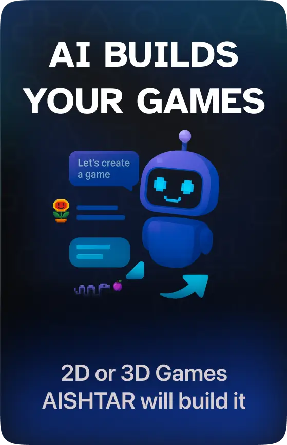 Not at all. Just chat with our AI and describe what kind of game you want. AISHTAR takes care of code, graphics, logic, and deployment — it's like talking to a game developer who works instantly.